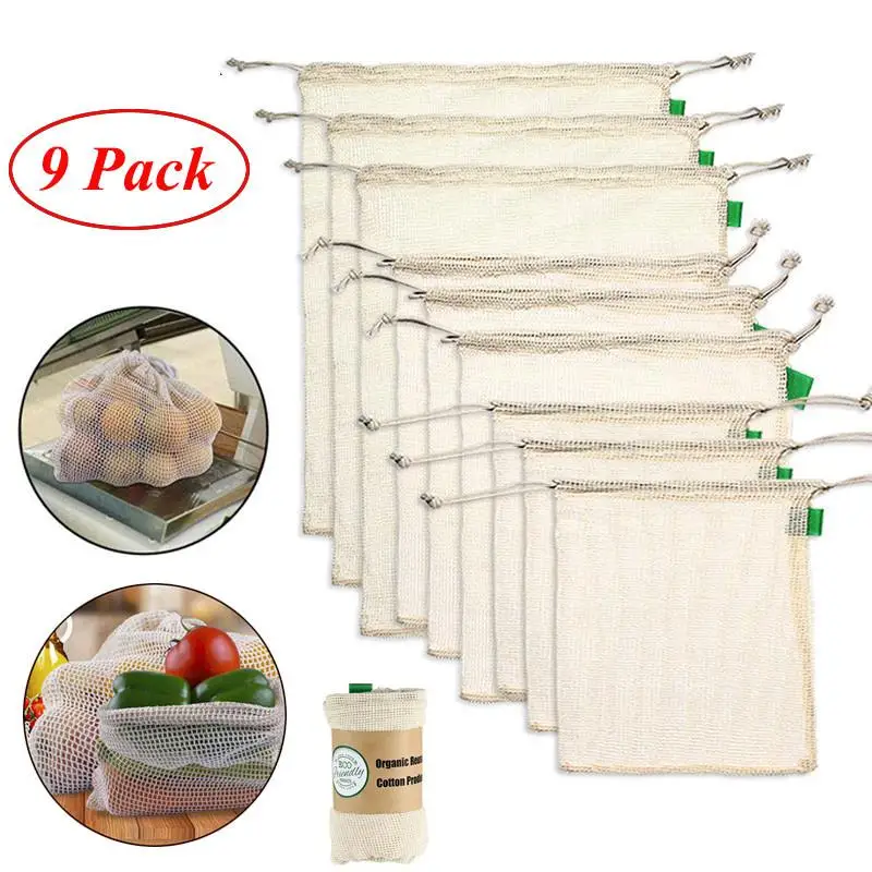 Special Offer 9pcs Set Premium Organic Cotton Mesh Produce Bags Reusable Washable Storage Drawstring Bag for Shopping Grocery Fruit Vegetable Discount 0% Today!